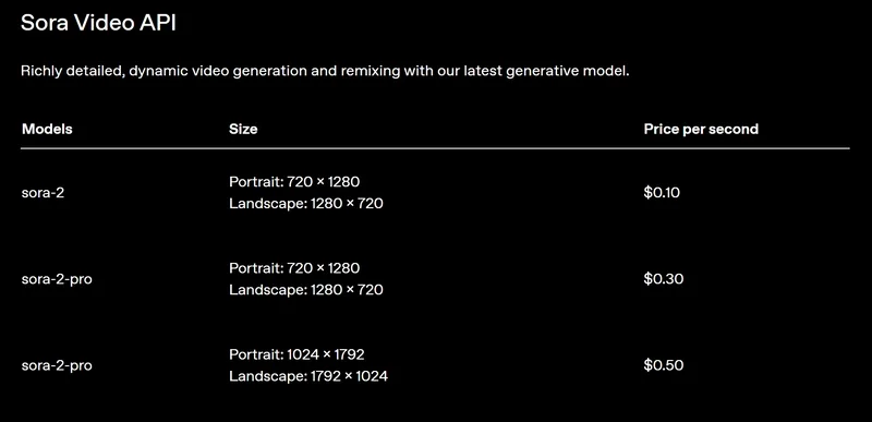- Paid: $0.40/sec (720p & 1080p), $0.60/sec (4K)