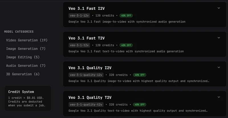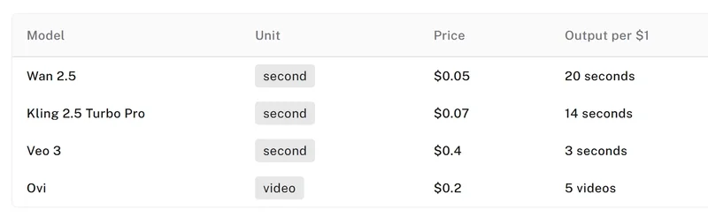 - Multiple APIs, multiple billing systems: Google Veo, Sora, Replicate, Fal.AI—they all have their own pricing logic.