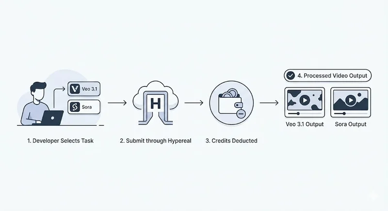 - Hypereal routes the job, credits are deducted, and I get a processed video.